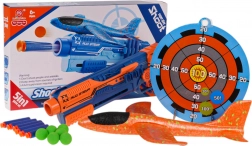 - pistool voor pijltjes, pistool voor balletjes, lanceerder, schieten op doel, foam vliegtuig