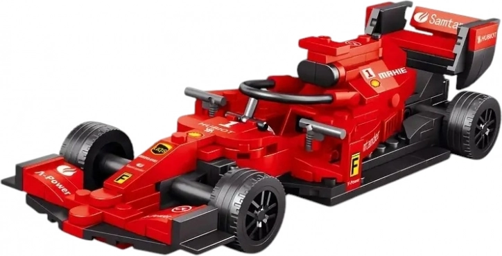 De complete set van hoogwaardige kunststof maakt het mogelijk een gedetailleerde rode auto te bouwen, geïnspireerd op F1 – ideaal om mee te spelen of om neer te zetten.