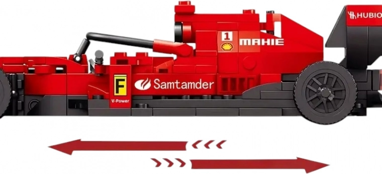 Het model is ontworpen om niet alleen visueel aantrekkelijk, maar ook speelbaar te zijn: met een bewegende spoiler, besturing met sturende wielen en rubberen banden voor extra grip. Bouwen volgens de afbeeldingengids stimuleert manuele vaardigheden, geduld en logisch denken.