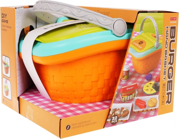 Vrolijke picknickset voor kleine chefs vanaf 3 jaar met 32 onderdelen vol smakelijk speelplezier. Bevat een ruime picknickmand, een klein mandje, fruit en groenten, pizza, hotdogs, tortilla’s, burgers plus drankjes en gerei. Perfect voor rollenspel koken, het stimuleren van de fantasie en gezellige momenten buiten en thuis.