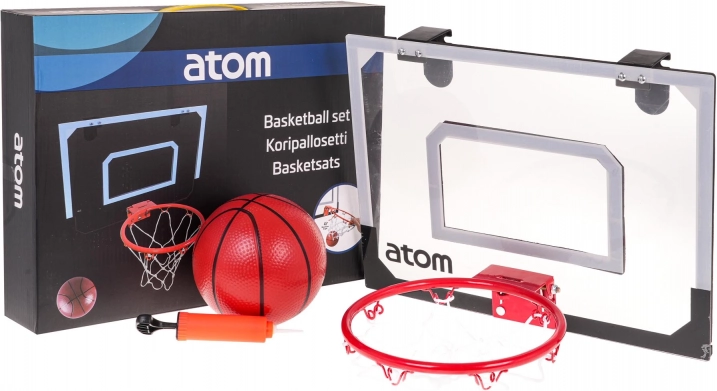 Complete basketbalset voor kinderen vanaf 8 jaar en volwassenen. Bevat een backboard, metalen ring met net, bal en pomp. Dankzij de haken hang je hem eenvoudig aan een deur of bevestig je hem aan de muur. De set is gemaakt van hoogwaardige materialen, het bord is slagvast en de metalen ring zorgt voor een lange levensduur. Perfect voor actief speelplezier en het ontwikkelen van sportieve vaardigheden thuis en onderweg.
