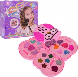 Het make-uppalet in de vorm van een roze uil opent in overzichtelijke lagen met oogschaduwen en balsems in zachte en opvallende kleuren. Dankzij de compacte afmetingen en het uitklapbare ontwerp is het ideaal voor thuis en onderweg. Alle producten zijn gemakkelijk met water afwasbaar en zacht voor de kinderhuid.