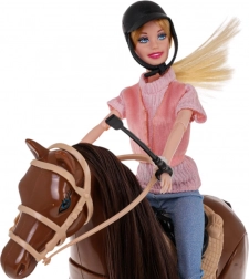 Deze aantrekkelijke set verbindt de wereld van poppen en paarden – ideaal voor kleine liefhebbers van paardrijden. De pop heeft beweegbare armen, benen en hoofd en prachtig, lang haar. Het paardje werkt op 3× AA-batterijen (inbegrepen) en kan naar voren rijden, met het hoofd bewegen en hinniken, waardoor het spel maximaal authentiek aanvoelt.