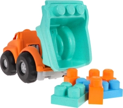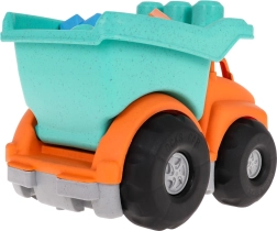 Gekleurde eco kiepwagen met blokken van duurzaam bioplastic voor kinderen vanaf 3 jaar biedt veilig spel, een bewegende laadbak en grote vrij draaiende wielen. Inclusief 7 blokken om te bouwen en de fijne motoriek te ontwikkelen. Het materiaal is milieuvriendelijk, het speelgoed heeft afgeronde vormen en levendige kleuren.