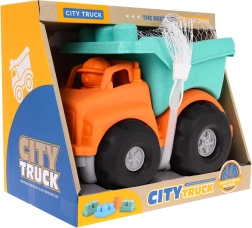 De laadbak kan eenvoudig met de hand omhoog en omlaag worden bewogen, zodat kinderen realistisch kunnen laden en lossen. Grote bewegende wielen zorgen voor een soepele rit.