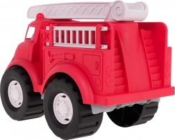 Kinder-brandweerauto van veilig bioplastic voor kinderen vanaf 3 jaar, met een duurzame constructie, bewegende wielen en een draaibare, hefbare ladder voor uren creatief spel. Het milieuvriendelijke ontwerp is natuurvriendelijk, kleurrijk en nodigt uit om brandweermissies thuis en buiten te ontdekken.