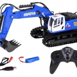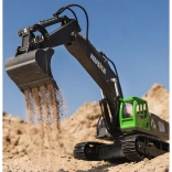 De 2,4 GHz afstandsbediening biedt volledige controle over alle functies van de graafmachine, inclusief rijden, sturen en het bedienen van de bak.