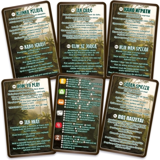 Elke kaart biedt een gedetailleerde illustratie en overzichtelijke statistieken (bijv. lengte, gewicht, snelheid), waardoor het spel zowel leuk vergelijken als een leerzame ervaring is.