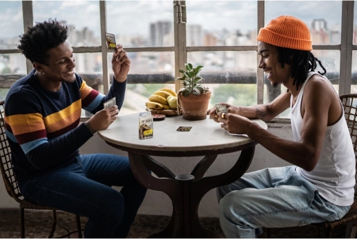 - Compacte verpakking: de tuckbox beschermt de kaarten en past in je zak.