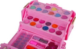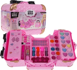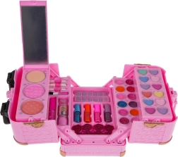 Make-upset voor kinderen met koffertje maakt meisjes vanaf 3 jaar blij. Het praktische koffertje met sluiting en handvat verbergt een kleurrijke inhoud: lipgloss, oogschaduw, lippenstift, poeders, glitternagellak, set kwastjes, kunstnagels, vingerspreider en een spiegeltje. De cosmetica is gemaakt van veilige materialen en is makkelijk afwasbaar.