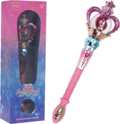 Deze magische staf – scepter is een geweldige aanvulling voor kleine prinsessen en sprookjesliefhebbers. Dankzij het opvallende hartje dat draait en in meerdere kleuren licht geeft, en de aangename melodieën, stimuleert hij creatief spel en de ontwikkeling van de verbeelding. De constructie van veilige en duurzame materialen garandeert een lange levensduur en een comfortabele grip.