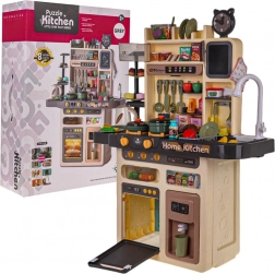 De ingebouwde gootsteen met werkende kraan maakt het mogelijk water te tappen en leert kinderen spelenderwijs basisgewoonten in de keuken.