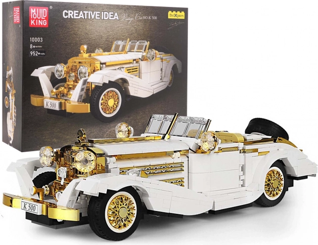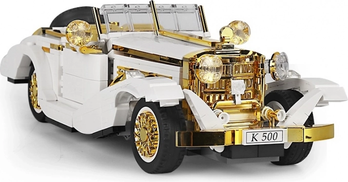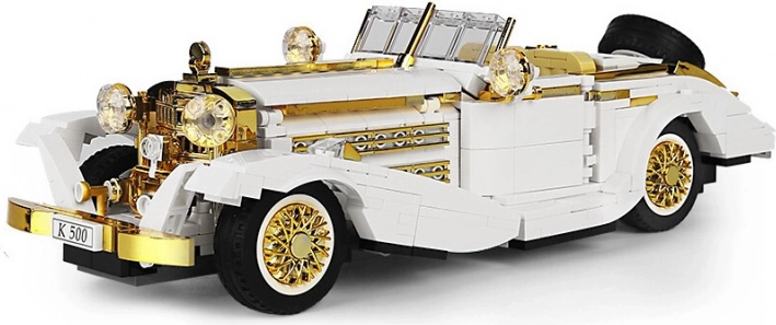 Bouw een stijlvolle retroauto met 952 onderdelen op schaal 1:16. Het model heeft openende deuren, motorkap en kofferbak, functionele besturing gekoppeld aan de wielen en goudchroom details. Ideaal... Meer tonen