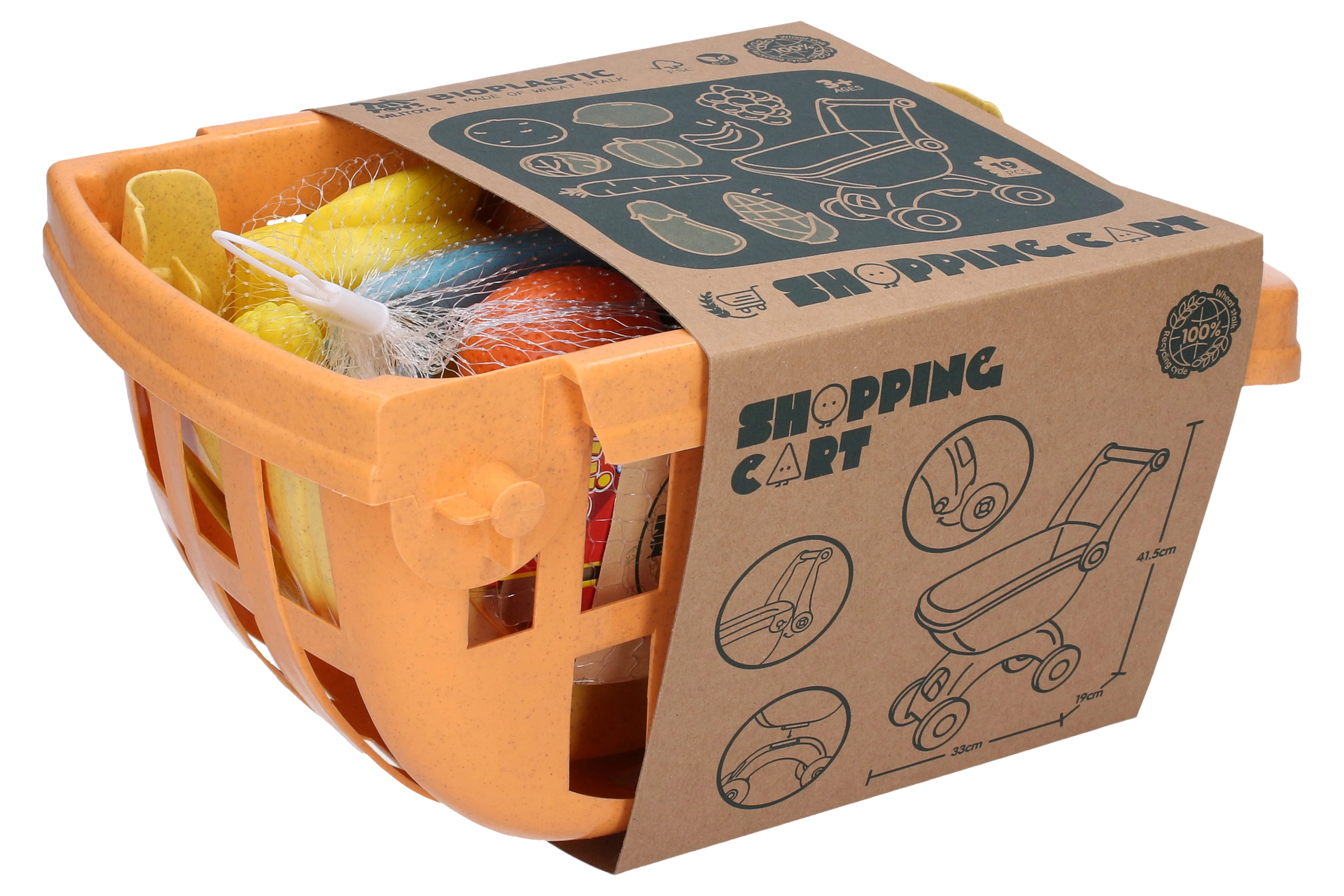 Het kinderboodschappenwagentje met etenswaren Bioplastic is een geweldige keuze voor creatief winkelspel. Dankzij de stevige kunststof constructie, comfortabele handgreep en soepel rollende wieltjes is het gemakkelijk te bedienen en geschikt voor kleuters. De kleurrijke etenswaren inspireren tot het nabootsen van echte situaties en ontwikkelen sociale vaardigheden.