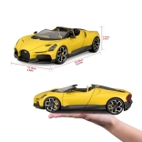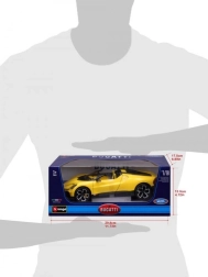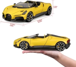 Exclusief verzamelmodel op schaal 1:18 dat de iconische roadster BUGATTI Mistral natuurgetrouw weergeeft in een aantrekkelijke gele kleur met zwarte accenten. Nauwkeurige afwerking, bewegende onderdelen en een gedetailleerd interieur zullen zowel supercarfans als veeleisende verzamelaars bekoren. De metalen carrosserie met kunststof details garandeert duurzaamheid en een realistische uitstraling, ideaal om tentoon te stellen of als stijlvol cadeau.