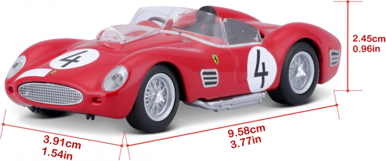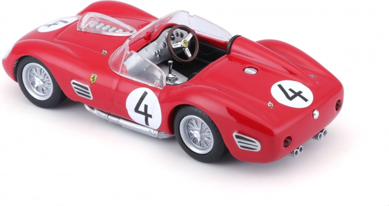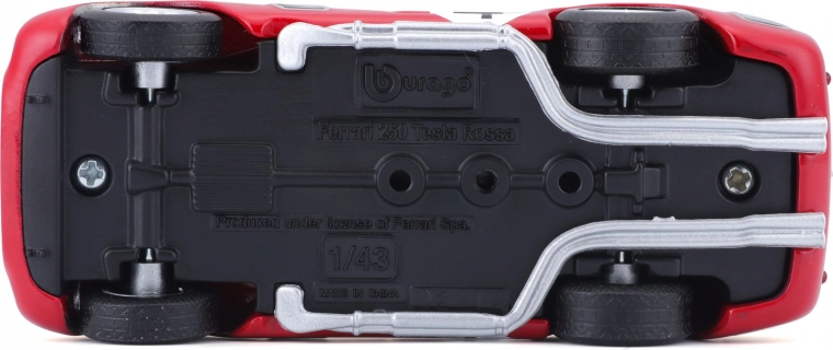 Ontdek een motorsportlegende in een precieze uitvoering. Dit gelicenseerde model FERRARI 250 TESTA ROSSA op schaal 1:43 biedt realistische details zoals spaakwielen, zijuitlaten, een transparante voorruit en racestartnummers. Perfect voor in de vitrine of als cadeau voor liefhebbers van klassieke raceauto’s.
