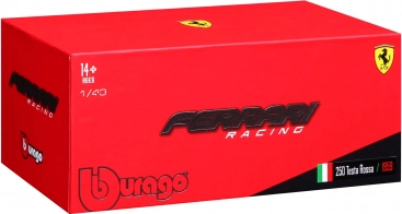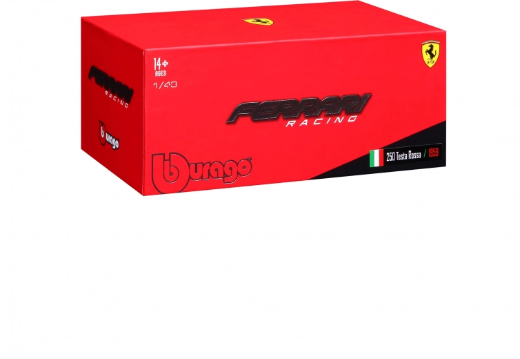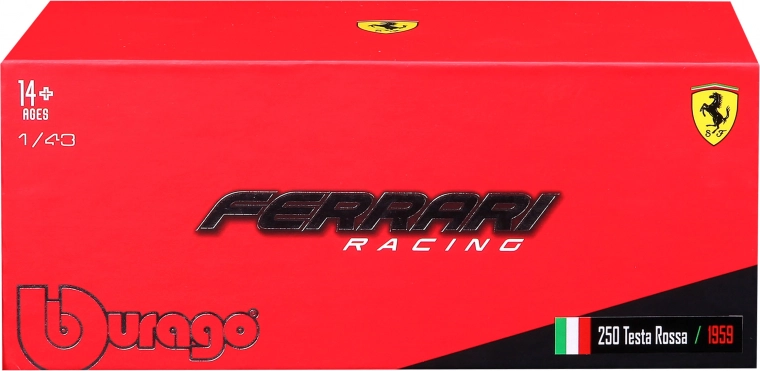 Aantrekkelijke doos met FERRARI- en BBURAGO-logo’s beschermt het model en is tevens geschikt om tentoon te stellen of cadeau te doen.