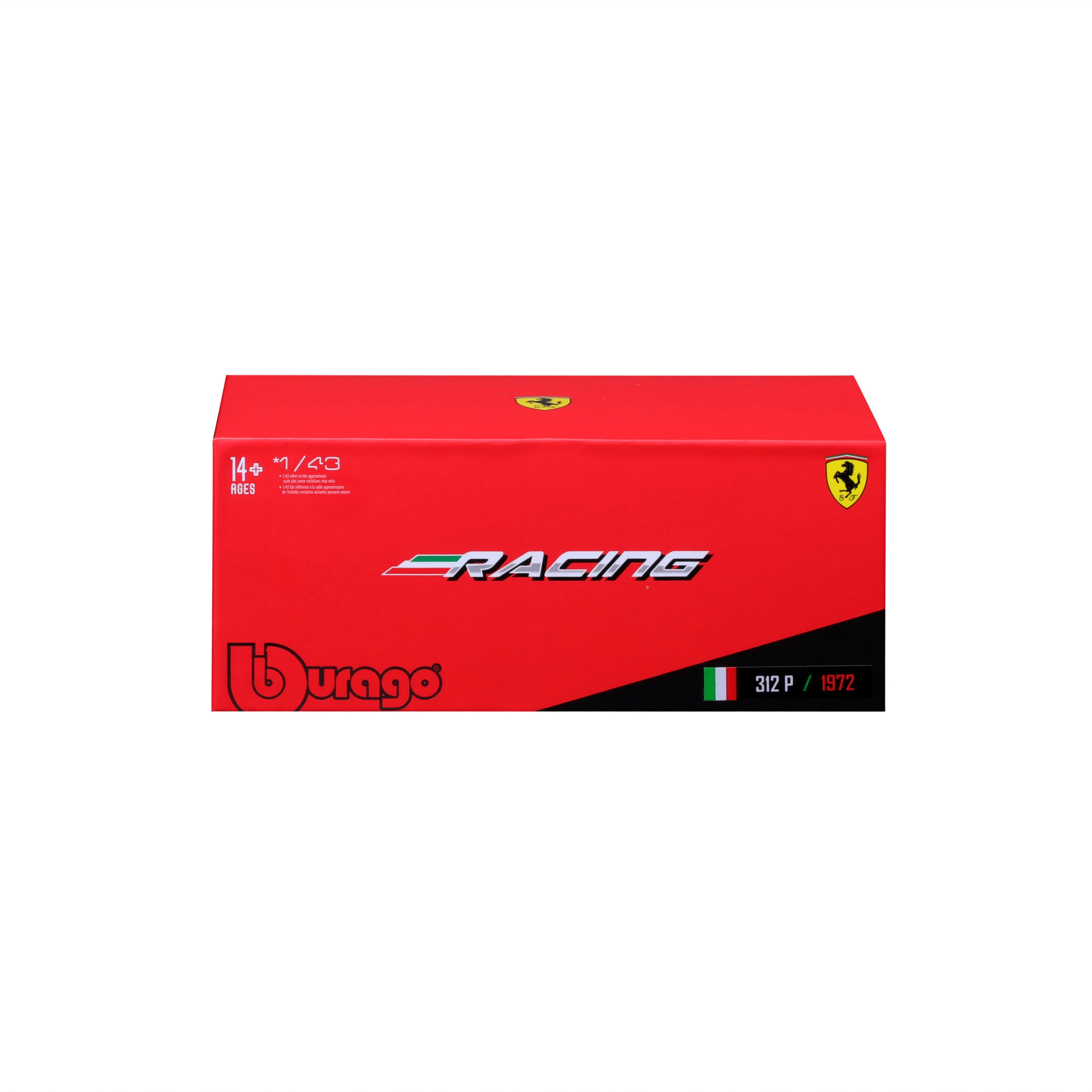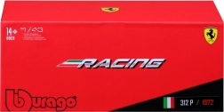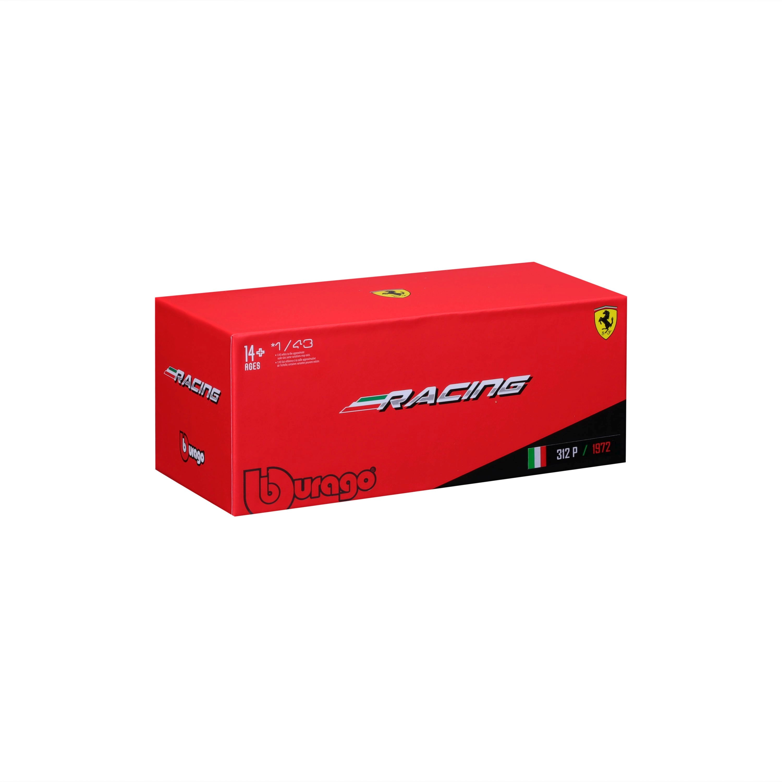 Aantrekkelijke doos met Ferrari-logo en het model 312 P/Ferrari Racing, klaar om cadeau te geven en voor veilige opslag van het model.