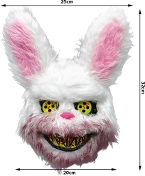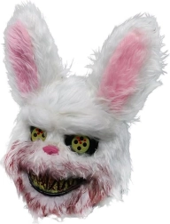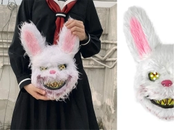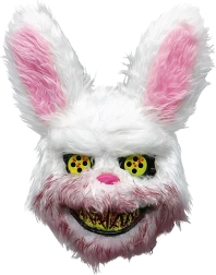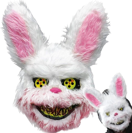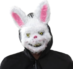 Wil je de blikvanger zijn op het Halloweenfeest? Dit harige konijnenmasker met een duister onheilspellende uitdrukking verandert zelfs een onschuldig konijn in een horroricoon. De combinatie van zachte vacht, opvallende gele/iriserende ogen en een brede, verontrustende glimlach zorgt voor een effect dat niemand vergeet.