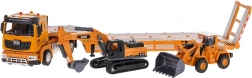 De set constructievoertuigen met loskoppelbare aanhanger is het ideale speelgoed voor elke kleine bouwer. Realistisch design en functionaliteit van de voertuigen dragen bij aan de ontwikkeling van de fantasie en motorische vaardigheden van kinderen.