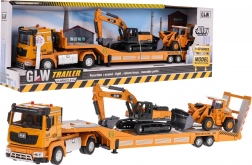 Interactieve constructievoertuigen met aanhanger voor kinderen vanaf 3 jaar combineren metaal en plastic voor maximale duurzaamheid. Het voertuig bestaande uit een vrachtwagen, graafmachine en lader biedt licht- en geluidseffecten, wat bijdraagt aan realistisch spel.
