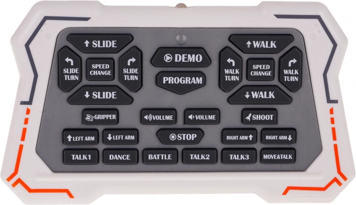 Deze innovatieve robot is ontworpen om te verrassen met zijn veelzijdige functies. Op afstand bestuurbaar via een RC-controller, de robot danst, voert gevechtssequenties uit, spreekt in een robottaal en heeft een programmeerbare bewegingsreeks. Dankzij de LED-verlichting in de handen en diverse geluidseffecten tijdens het bewegen is hij ideaal voor creatief spel.