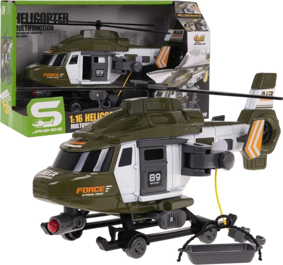 De militaire reddingshelikopter is gemaakt van de beste kwaliteit plastic in heldere kleuren, waardoor het niet alleen aantrekkelijk maar ook duurzaam is.