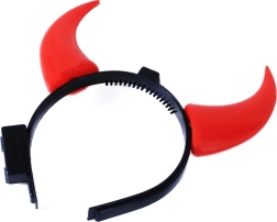Coole lichtgevende diadeem met duivelshoorns die na het indrukken van de knop knippert. Bevat 3× LR44-batterijen, zodat je hem meteen kunt gebruiken. Ideaal voor carnaval, kerstfeest en themafeestjes. Geschikt vanaf 3 jaar.