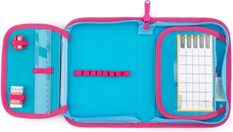 Stijlvolle en praktische etui met één compartiment en twee flapjes houdt alle potloden, kleurpotloden en accessoires op één plek. Dankzij de 25 stevige elastische lussen heb je alles overzichtelijk geordend en altijd bij de hand. Op de flapjes ontbreken de transparante hoesjes voor het invoegen van het lesrooster of notities niet.