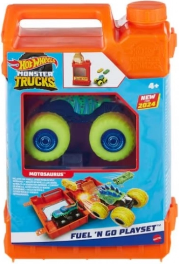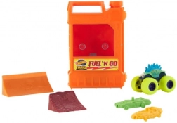 Duik in epische avonturen met de Hot Wheels Monster Trucks Jerrycan Fuel 'N Go speelset! Deze gedetailleerde set in de vorm van een benzinejerrycan klapt open tot een mini-arena voor stunts en een reparatiezone. Met het meegeleverde Motosaurus-voertuig op schaal 1:64 rijd je moeiteloos de ramp op en ram je twee wrakauto’s. Extra voertuigen en trucks vergroten het niveau van verwoesting! (Bevat twee wrakauto’s. Overige voertuigen op de afbeeldingen zijn apart verkrijgbaar.)