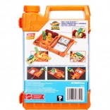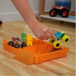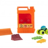 De jerrycan-speelset klapt eenvoudig open tot een mini-arena voor stunts en een reparatieplek.