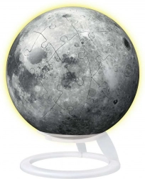 De Ravensburger 3D Lichtgevende Puzzel Maan combineert plezier met decoratie. Deze puzzel bevat 73 stukjes die dankzij de speciale EasyClick-technologie eenvoudig en precies in elkaar passen. Na het leggen vormen ze een stevige en stabiele bol.