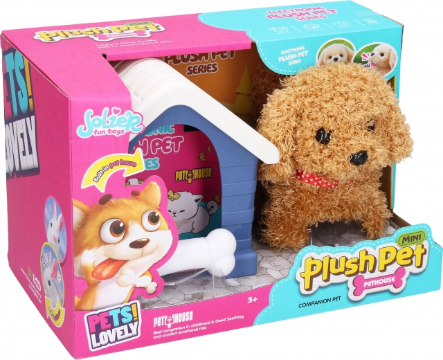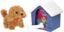 Schattig hondje met hondenhok dat elk kind zal verrassen. De set bevat een hok, hondje en bot, die uitnodigen tot spel en de fantasie stimuleren. Het hondje is 15 cm groot, het hok 16 cm. Het speeltje werkt op 2× AA-batterijen (niet inbegrepen).