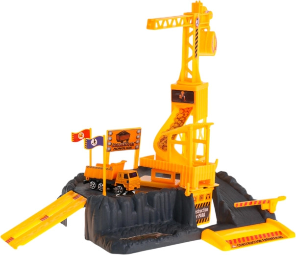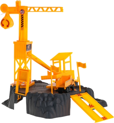 De set is gemaakt van hoogwaardig kunststof in levendige kleuren, bestand tegen normaal kinderspel. Dankzij praktische functies zoals de 360° draaibare kraan, de openslaande poort naar de “garage” onder de kraan en de handmatige slagboom creëren kinderen eenvoudig hun eigen bouwplaats.