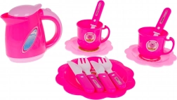 Een theepot, kopjes met lepeltjes, bordjes en bestek veranderen de kinderkamer in een theesalon. Perfect voor rollenspellen met gasten en verjaardagsfeestjes.