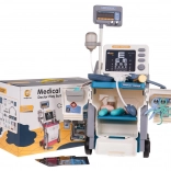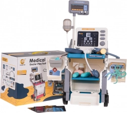 Interactieve doktersspeelset op een trolley met ECG-paneel en licht- en geluidseffecten voor kleine dokters vanaf 3 jaar. Bevat 26 accessoires, waaronder een stethoscoop, thermometer met licht, injectiespuit en verwisselbare röntgenfoto’s. De lichte trolley met grote wielen en een praktische handgreep maakt verplaatsen tijdens het doktertje spelen gemakkelijk.