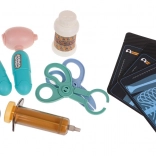 Stethoscoop met hartslaggeluid, verlichte thermometer, injectiespuit, schaar, pincet, flesje, pipet, tandartsgereedschap en meer accessoires voor creatief spel.