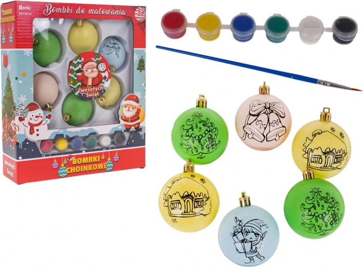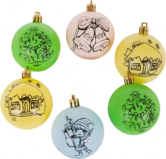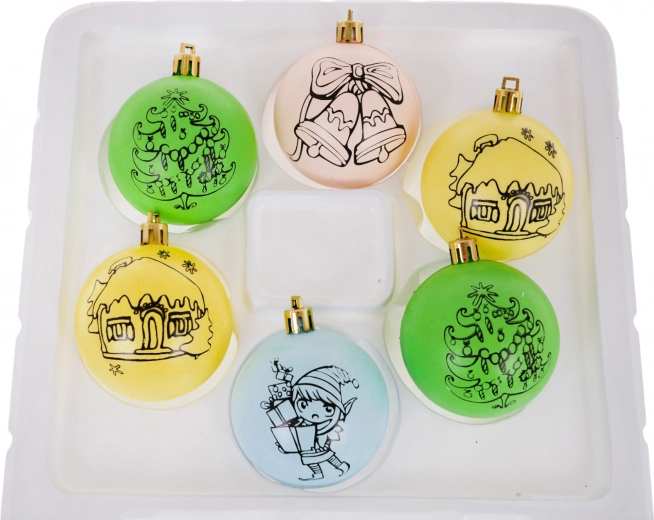 Deze set bevat 6 ornamenten om te verven, geschikt voor kinderen vanaf 3 jaar. Elk ornament is voorzien van een laag met een kerstmotief dat je naar eigen fantasie kunt inkleuren. De set bevat ook verf met een penseel en extra koordjes om op te hangen.