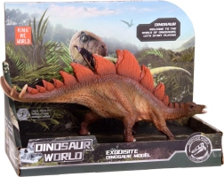 De Stegosaurus-figuur is vervaardigd met realistische details en texturen en toont de karakteristieke rode platen op de rug.