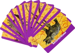 De set bevat 12 kaarten die verschillende soorten dinosaurussen presenteren en leerzame informatie bieden.