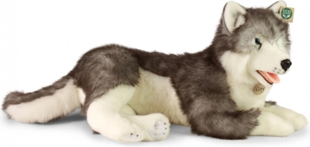 Een schattige liggende husky van 60 cm maakt zowel kinderen als verzamelaars blij. Hij is met de hand genaaid van hoogwaardig, zacht pluche en oogt levensecht. De vulling is gemaakt van gerecyclede PET-flessen, dus ECO‑FRIENDLY, veilig en prettig aan te raken. Een geweldig cadeau voor liefhebbers van knuffels en duurzame speelgoedkeuzes.