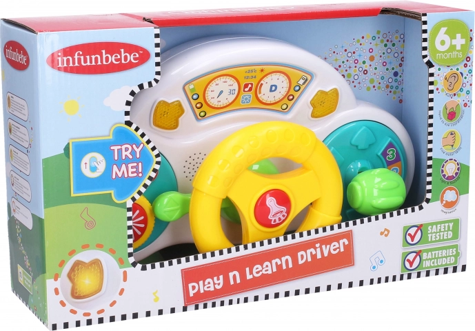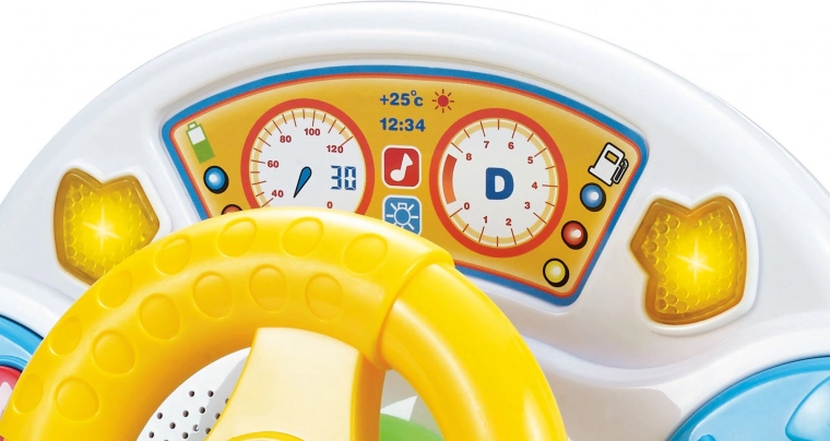 Het interactieve stuurtje is een geweldig speelgoed voor kinderen die van auto’s en rijden houden. Met verschillende knoppen, hendels en schakelaars leren kinderen kleuren, vormen en geluiden onderscheiden terwijl ze de oog-handcoördinatie oefenen. Licht- en geluidseffecten houden de aandacht vast en ondersteunen de zintuiglijke waarneming.
