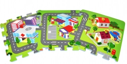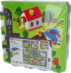 De delen zijn volledig afwasbaar en bevatten geen schadelijke stoffen. Ze kunnen worden gebruikt als speelmat of als losse blokken voor bouwen en creatieve pret. Het stadsthema stimuleert de verbeelding en ondersteunt de ontwikkeling van zowel fijne als grove motoriek.