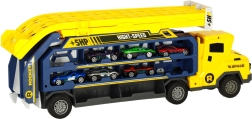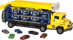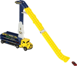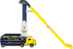 Deze multifunctionele autotransporter verandert in een handomdraai in een indrukwekkende tweesporige racebaan. Kinderen kunnen tot zes kleine autootjes vervoeren en ze vervolgens over parallelle banen laten racen voor spannende wedstrijden. Het aantrekkelijke geel-blauwe design nodigt uit tot spelen en stimuleert fijne motoriek en oog-handcoördinatie.