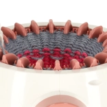 Dankzij de 22 naalden beheerst de machine zowel rondbreien als plat breien. De compacte afmetingen van 20 × 17 cm en de binnen diameter van 12,5 cm zijn perfect voor snelle projecten zoals mutsen, beenwarmers, sjaals of kinderaccessoires. In de set zitten ook 2 bolletjes garen, een naald en een haak voor eenvoudig afhechten en afwerken.