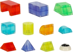 Transparante onderdelen in vele vormen en kleuren ondersteunen creatief bouwen, van eenvoudige modellen tot complexe 3D-constructies.
