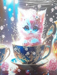 Maak je eigen sprankelend kunstwerk met een schattige kitten in een kopje en geniet van ontspannend knutselen voor kinderen en volwassenen. De set bevat alles wat je nodig hebt – canvas met stevige lijst, gekleurde steentjes, applicatiepen, bakje en was. Eenvoudig diamantschilderen zonder artistieke vaardigheden, ideaal als creatief cadeau en gezamenlijke activiteit voor het hele gezin.