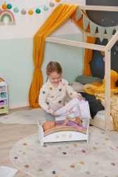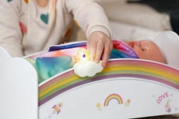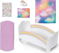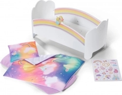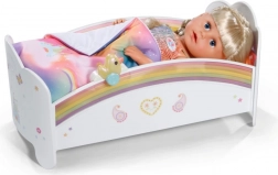 Het schattige regenboog ledikantje voor BABY born poppen verandert het naar-bed-gaan in een magisch ritueel. Het biedt een nachtlampje met slaapliedje, omkeerbaar beddengoed en een design dat je met stickers kunt versieren. Ook is er een geheim vak onder de matras voor kleine schatten.