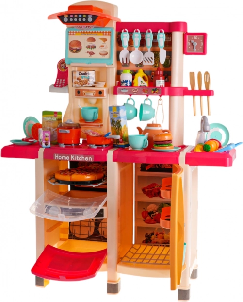 Onderdeel is een te openen oven met licht en geluid, een koelkast met een imitatie-waterdispenser, een vaatwasser, een ingebouwde koffiemachine, een paneel met ventilator en effecten, en ook een telefoon met licht- en geluidsfuncties. De rijke accessoires omvatten servies, etenswaren met klittenband, receptkaarten en meer voor urenlang speelplezier.
