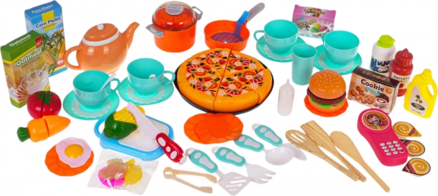 Er is een paneel met ventilator en effecten, een telefoon met geluiden (beltoon, dieren, liedje) en talrijke vakjes om voedsel en keukengerei op te bergen. De set is rijk uitgerust – van potten, pannen, keukengerei en servies tot pizza, groenten met klittenband en andere levensmiddelen. Voor extra plezier zorgt de snelkookpan op batterijen die bubbels en kookgeluiden maakt; drie voedingsmiddelen (vis, kreeft/krab, stuk vlees) veranderen van kleur daarin.